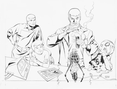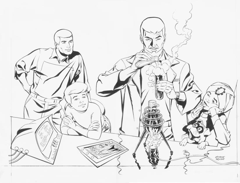 What is Dr. Quest doing? Bandit sure seems interested. (a B&W line drawing by